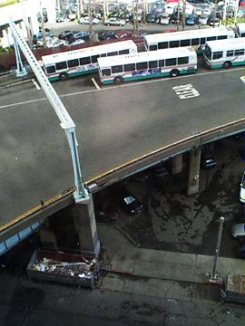 San Francisco - Beale & Howard This looks like a highway ramp or something, but is really a turnaround/parking lot for busses. The white tops of busses are appealing. |